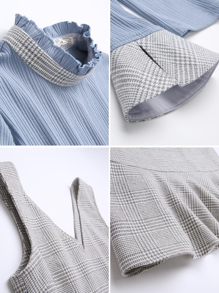 MG小象chic毛針織衫女秋冬新款格子背帶連衣裙小清新喇叭袖上衣潮