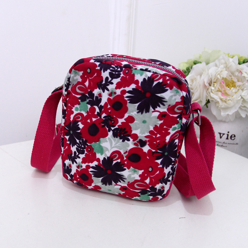 / 新款豎版單肩小花包女斜挎迷你帆布夏季時尚小包包可愛零錢斜跨包