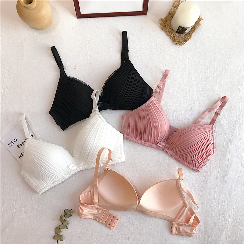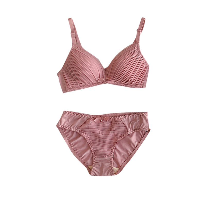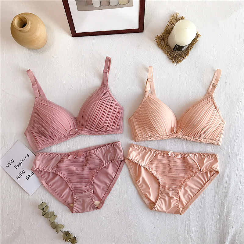 / 夏季時尚無鋼圈文胸套裝聚攏小胸罩性感深V蕾絲少女內衣內褲女士