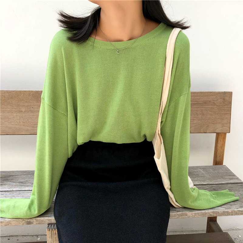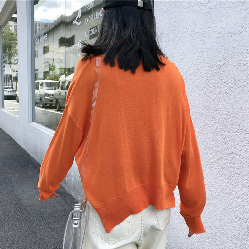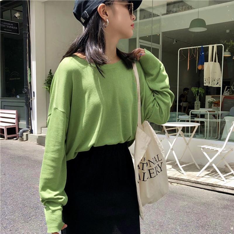 / 寬松圓領長袖針織衫女秋冬裝新款時尚純色外套學生休閑短款上衣潮