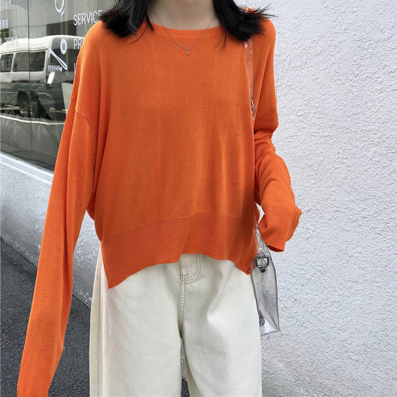 寬松圓領長袖針織衫女秋冬裝新款時尚純色外套學生休閑短款上衣潮