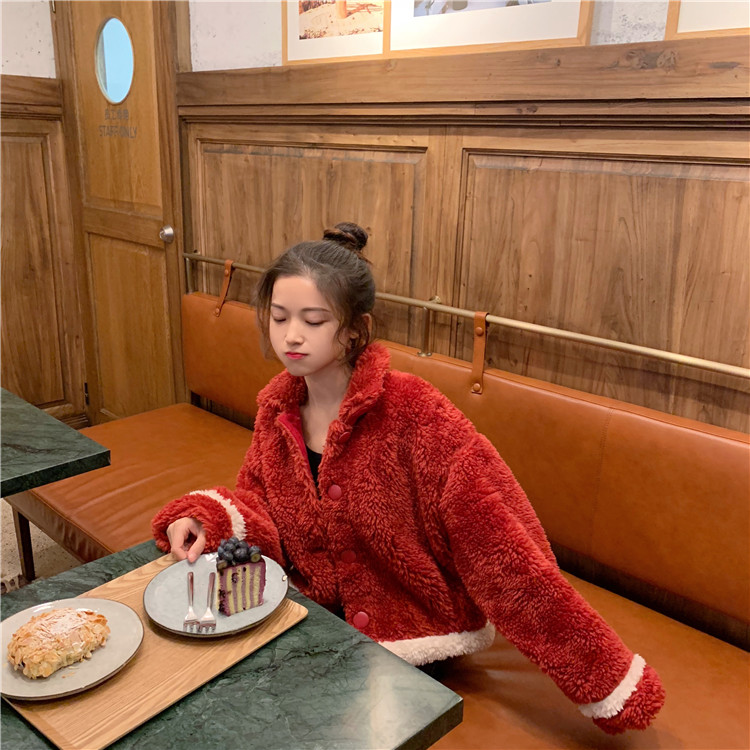 韓版棉服外套女秋裝2018新款寬松加厚保暖仿羊羔毛棉衣短款開衫潮