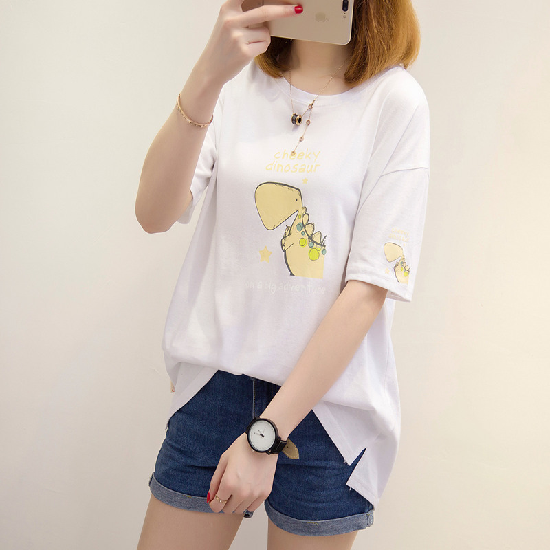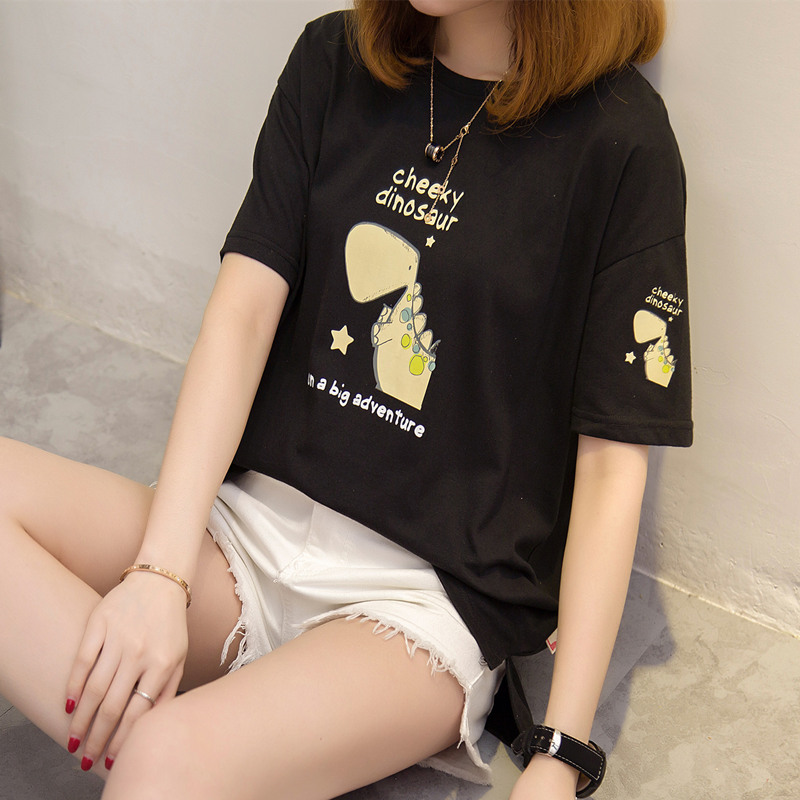 / 短袖t恤女寬松上衣女夏新款白色卡通打底體恤衫韓版衣服百搭