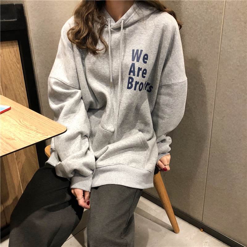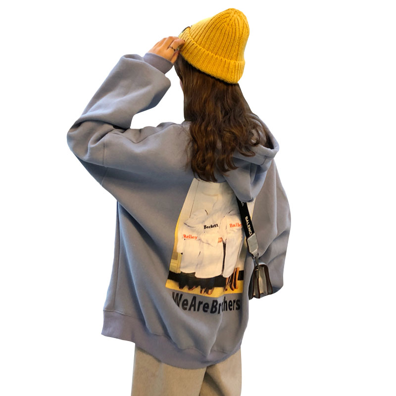 2018新款秋冬韓版寬松原宿風卡通字母連帽加絨加厚超火衛衣外套女