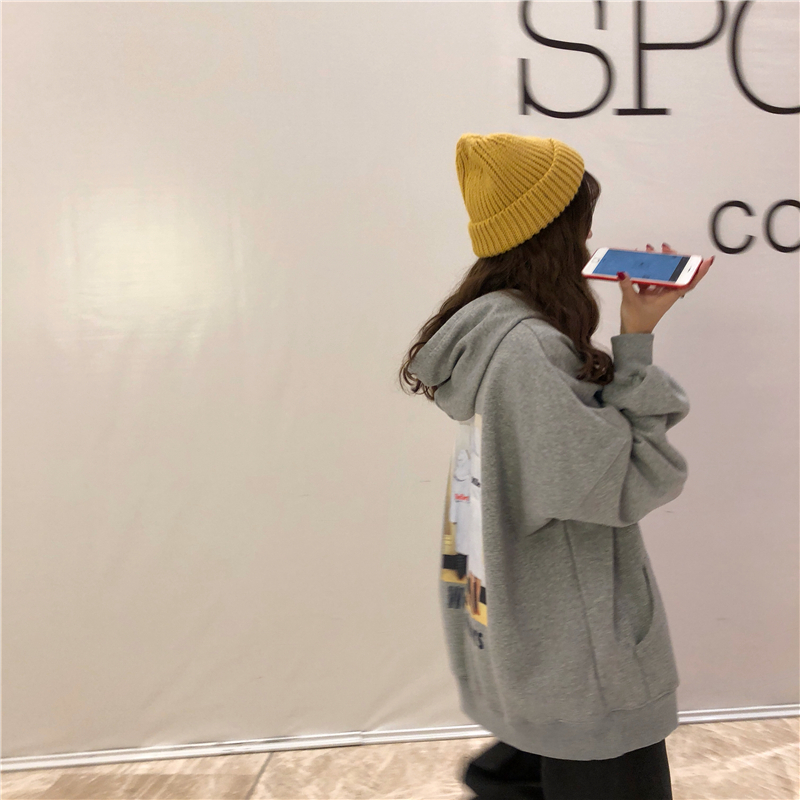 / 2018新款秋冬韓版寬松原宿風卡通字母連帽加絨加厚超火衛衣外套女