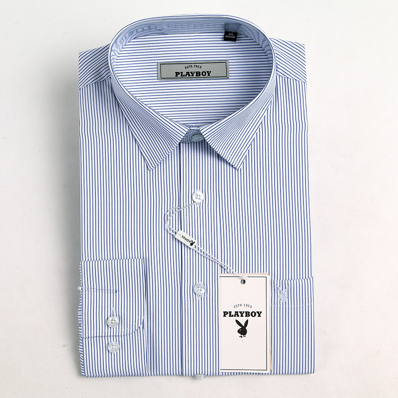 / 秋裝新款品牌中年男士長袖襯衫商務休閑男裝條紋純棉免燙襯衣薄款