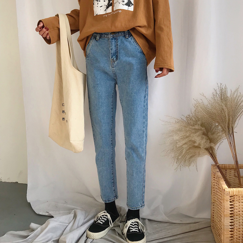 / 秋裝女裝韓版高腰休閑褲直筒褲九分褲顯瘦牛仔褲長褲學生小腳褲潮