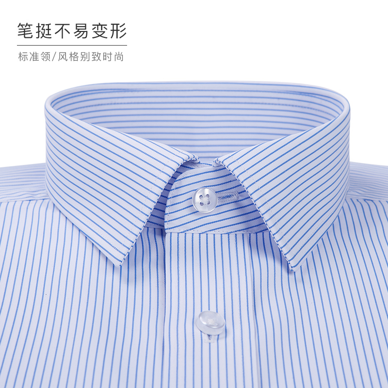 深海夏季薄款冰絲免燙抗皺襯衫男條紋襯衣短袖男士寸商務休閑修身