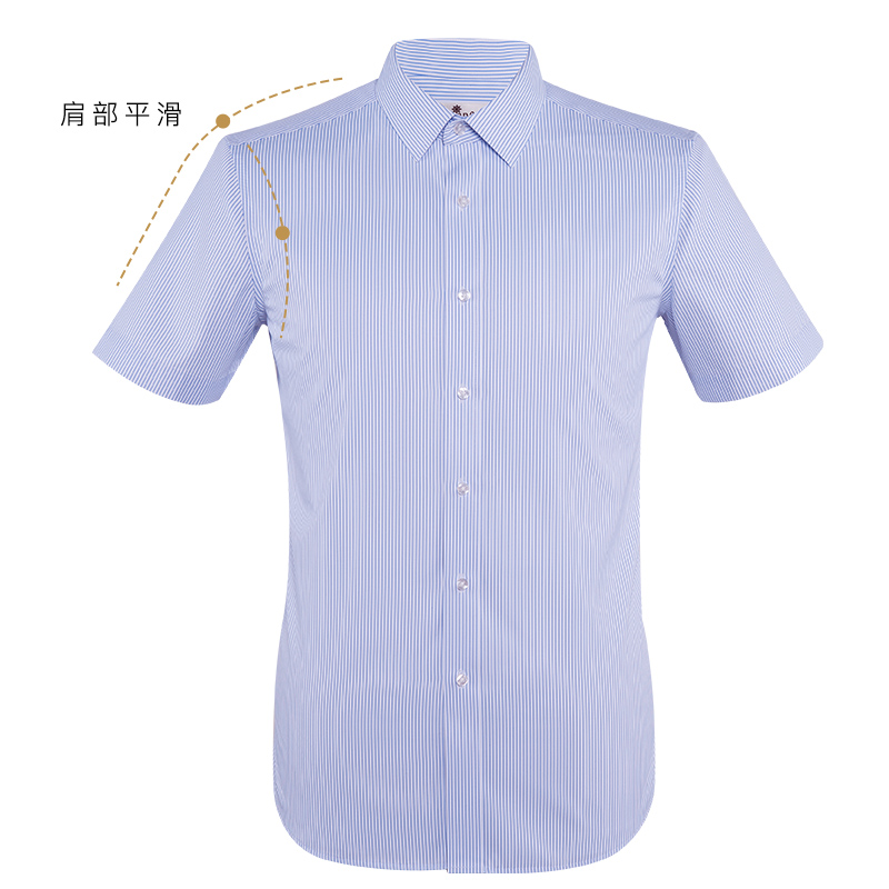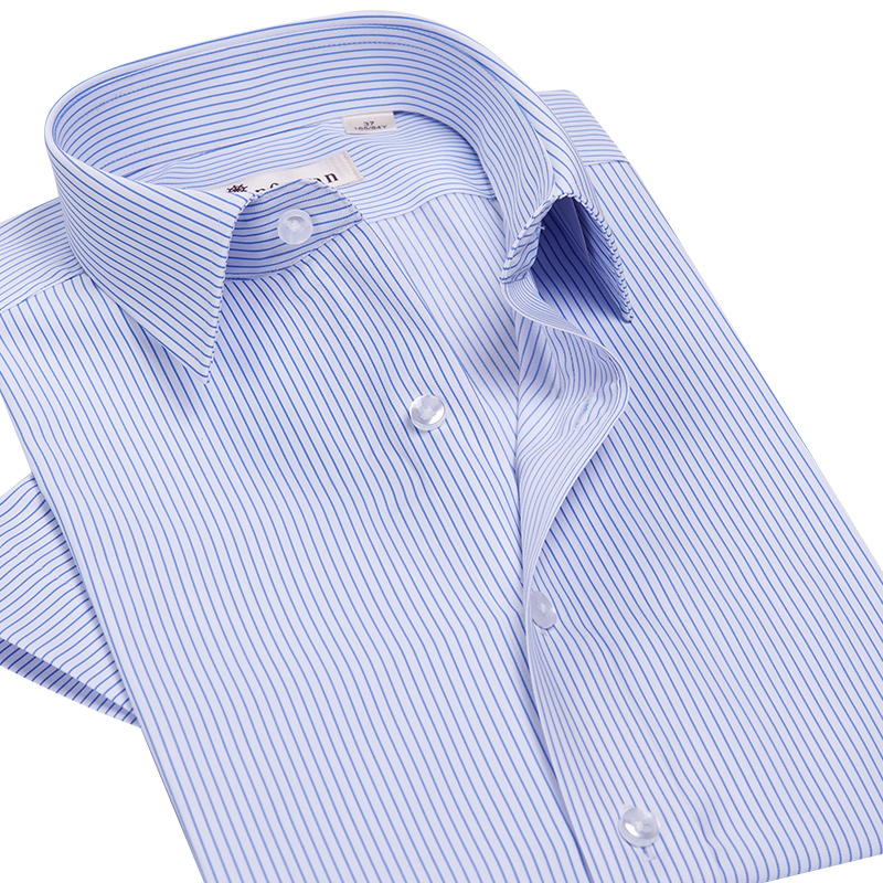 / 深海夏季薄款冰絲免燙抗皺襯衫男條紋襯衣短袖男士寸商務休閑修身