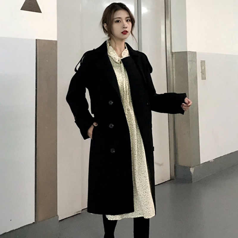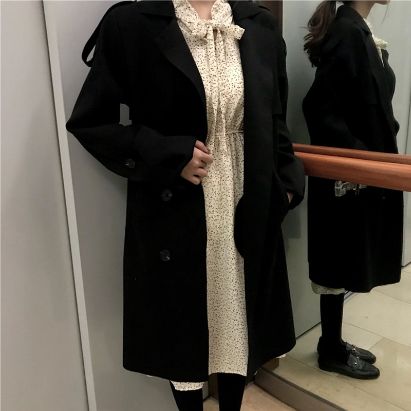 韓版2018流行寬松毛呢外套女秋冬裝新款中長款風衣學生開衫上衣潮
