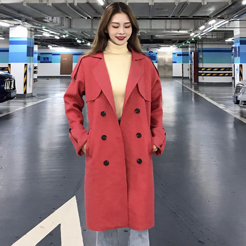 / 韓版2018流行寬松毛呢外套女秋冬裝新款中長款風衣學生開衫上衣潮
