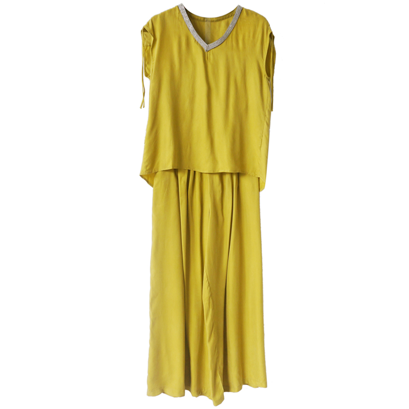 S秀2018夏季新款女裝時尚女神范休閑修身氣質純色闊腿褲套裝潮