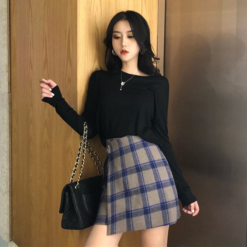 / 秋冬女裝2018新款韓版高腰顯瘦毛呢A字短裙系帶復古風格子半身裙