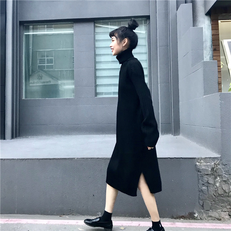 / 秋冬韓版高領慵懶風中長款寬松打底針織毛衣連衣裙長裙學生裙子女