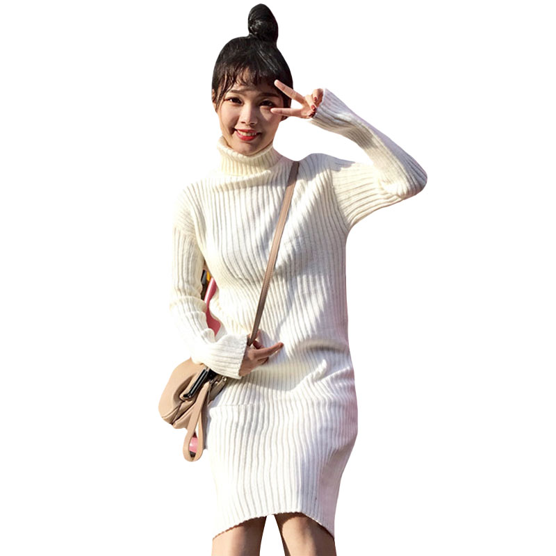 秋冬韓版高領慵懶風中長款寬松打底針織毛衣連衣裙長裙學生裙子女