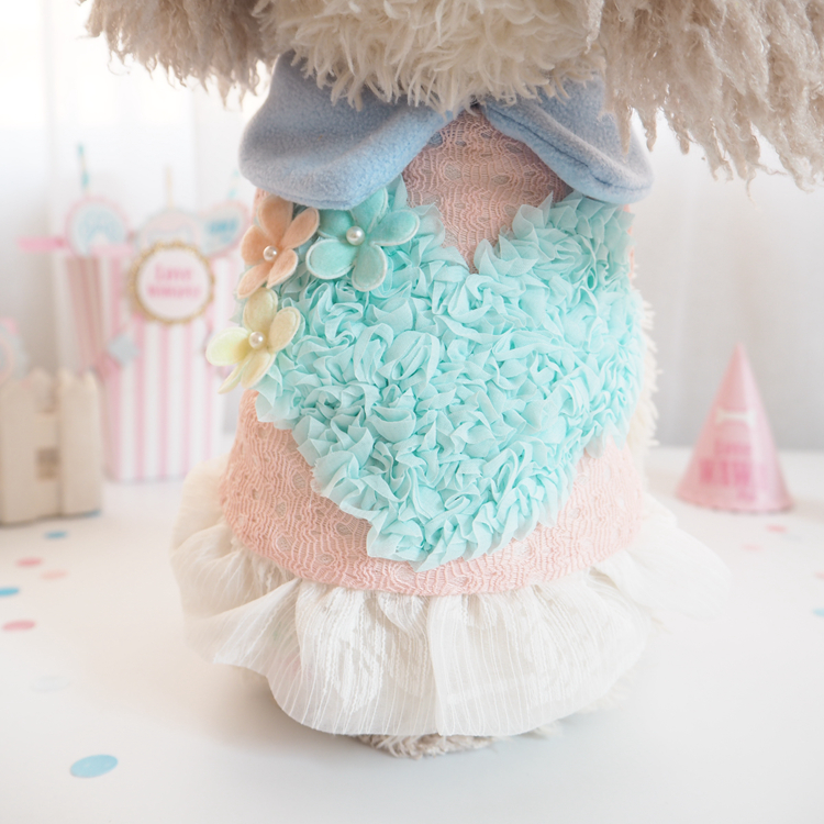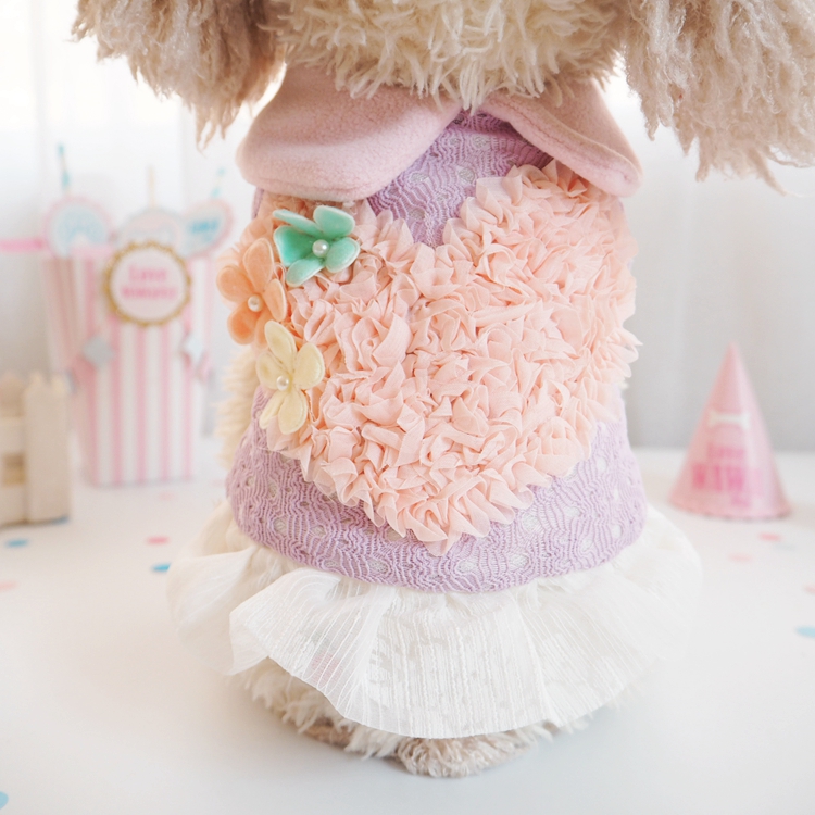 三色桃心花蕾絲寵物狗狗衣服秋冬款貴賓泰迪犬貓咪服裝中小型犬