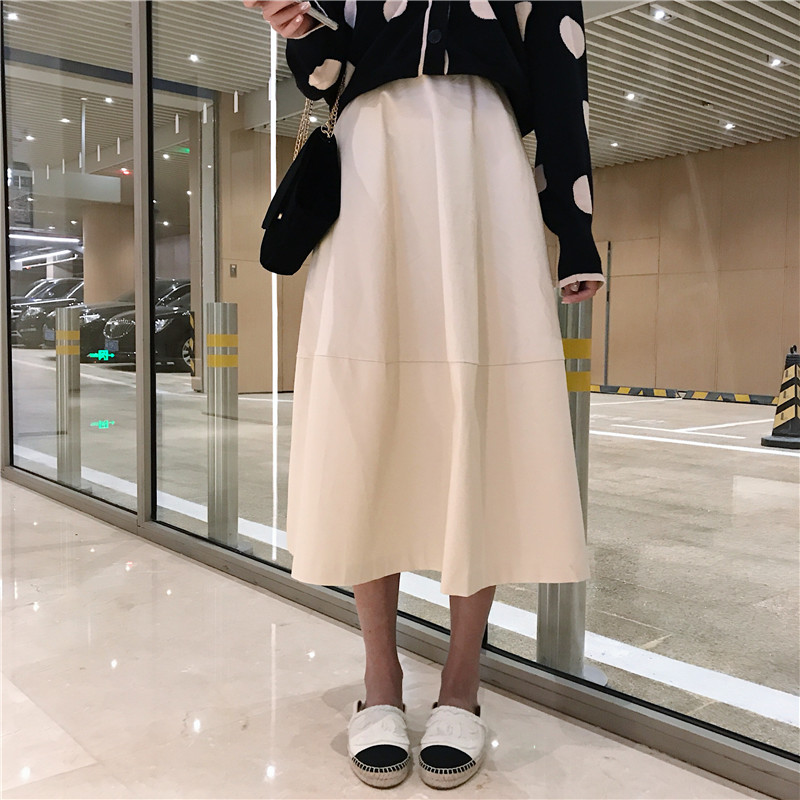 韓國ulzzang單排扣百搭波點針織開衫外套女+高腰中長半裙復古套裝