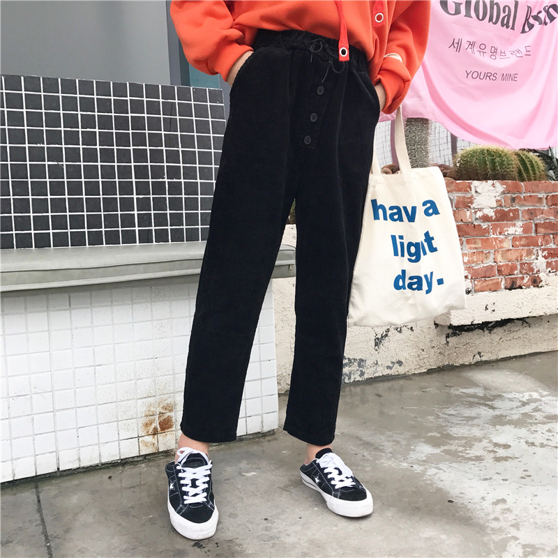 / 秋冬韓版松緊腰燈芯絨褲子高腰寬松哈倫褲休閑褲直筒褲長褲學生女