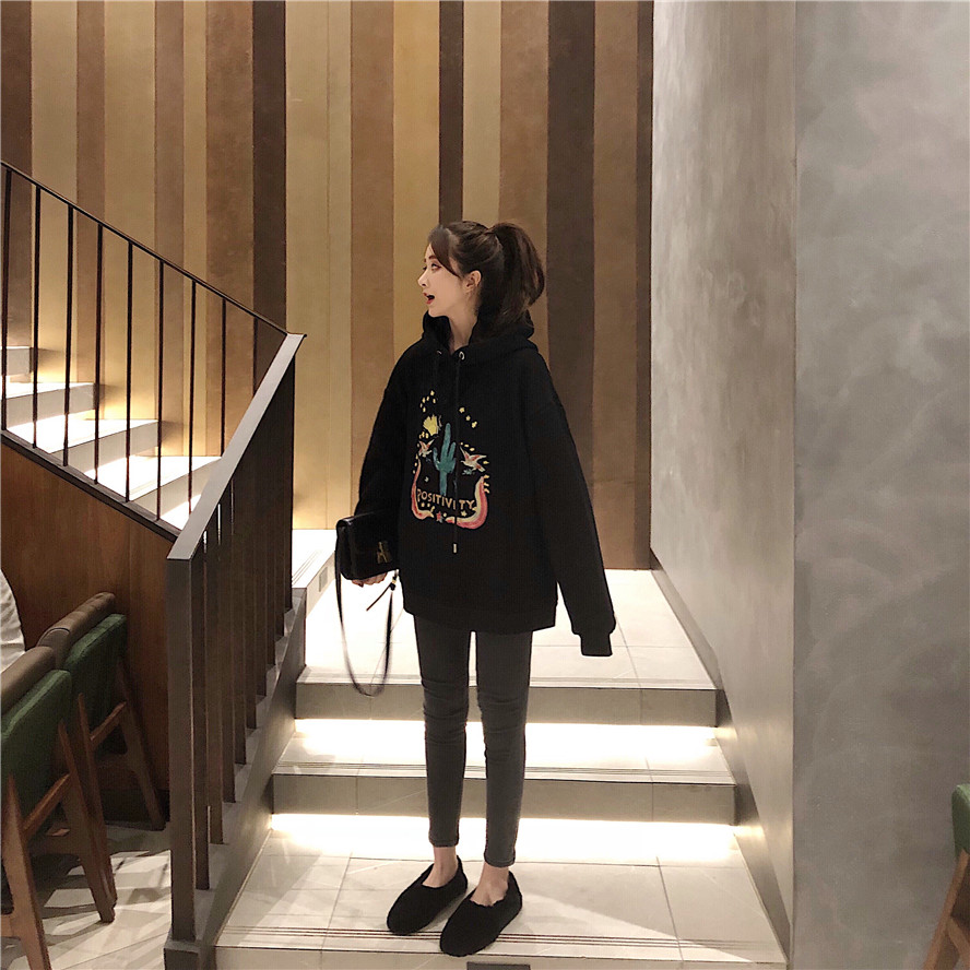 慵懶風上衣女寬松衛衣女秋2018新款中長款加絨加厚連帽衛衣外套女