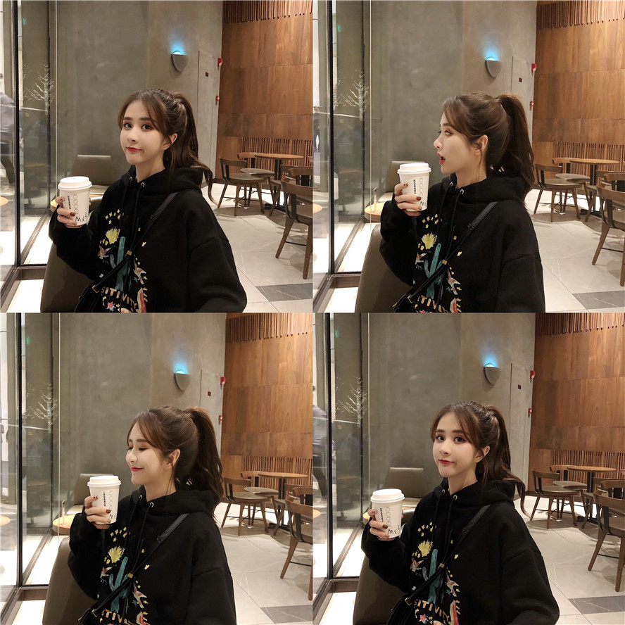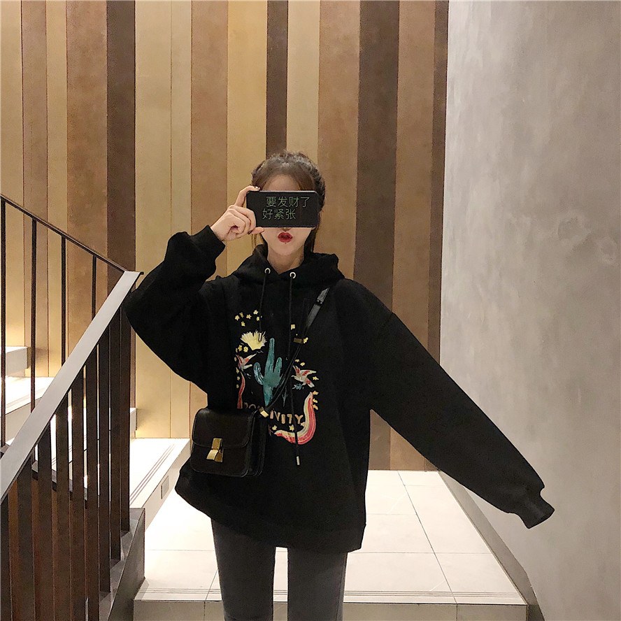 / 慵懶風上衣女寬松衛衣女秋2018新款中長款加絨加厚連帽衛衣外套女