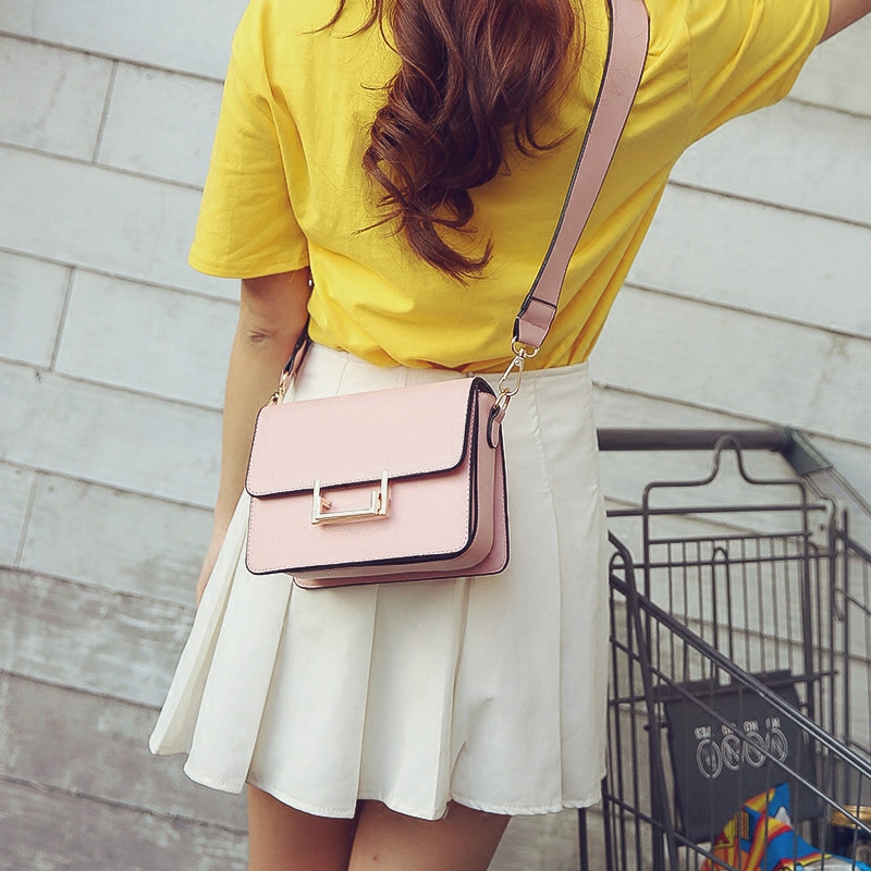 / 包包女新款潮撞色寬肩帶女包迷你小方包韓版百搭斜挎單肩小包