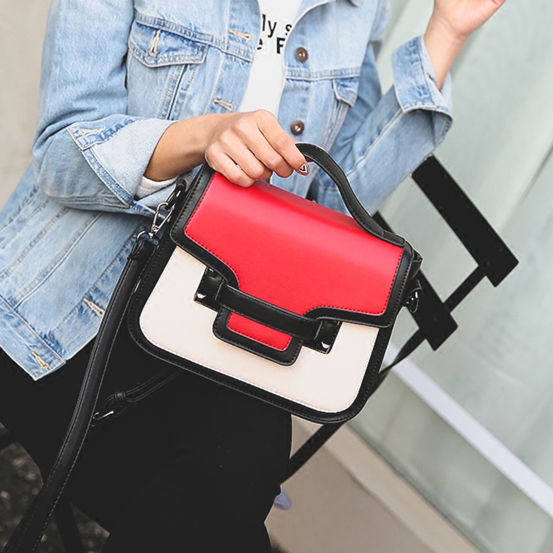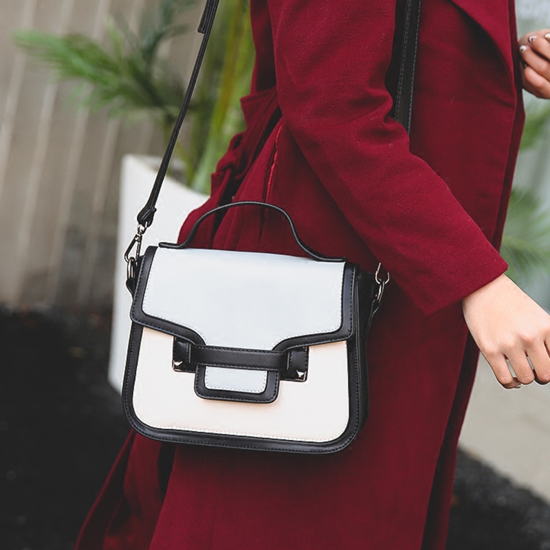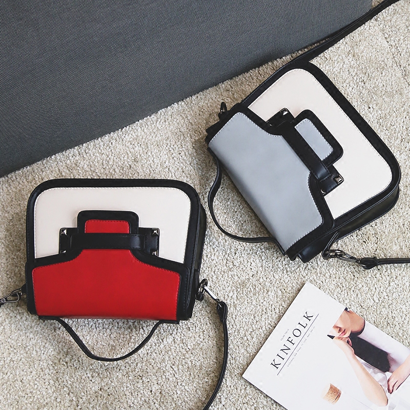 / 新款日韓版迷你撞色小方包女單肩斜挎包時尚鉚釘手提包小包潮