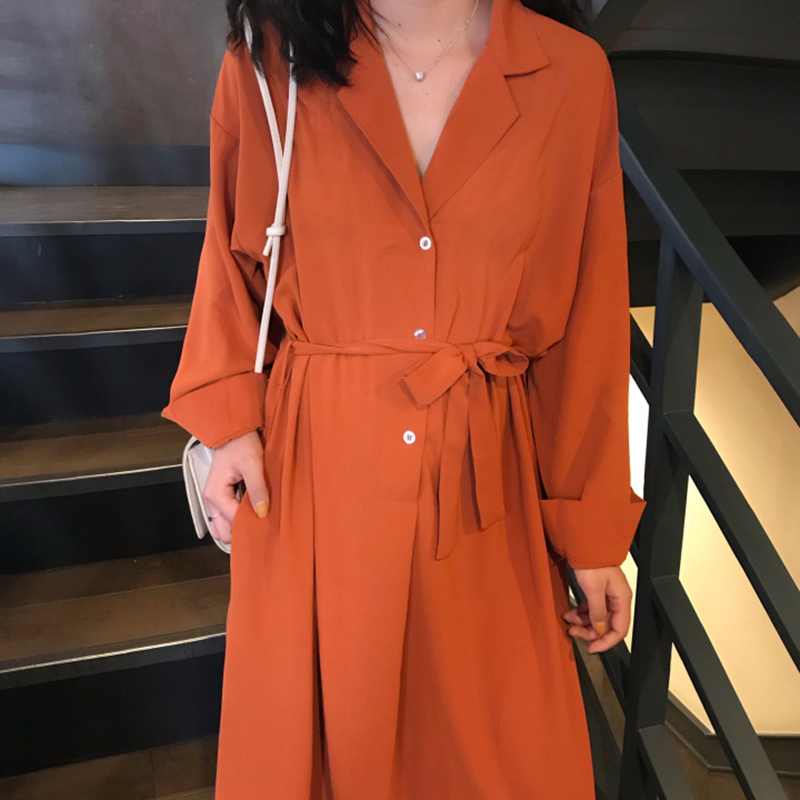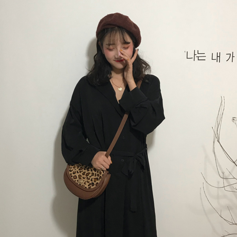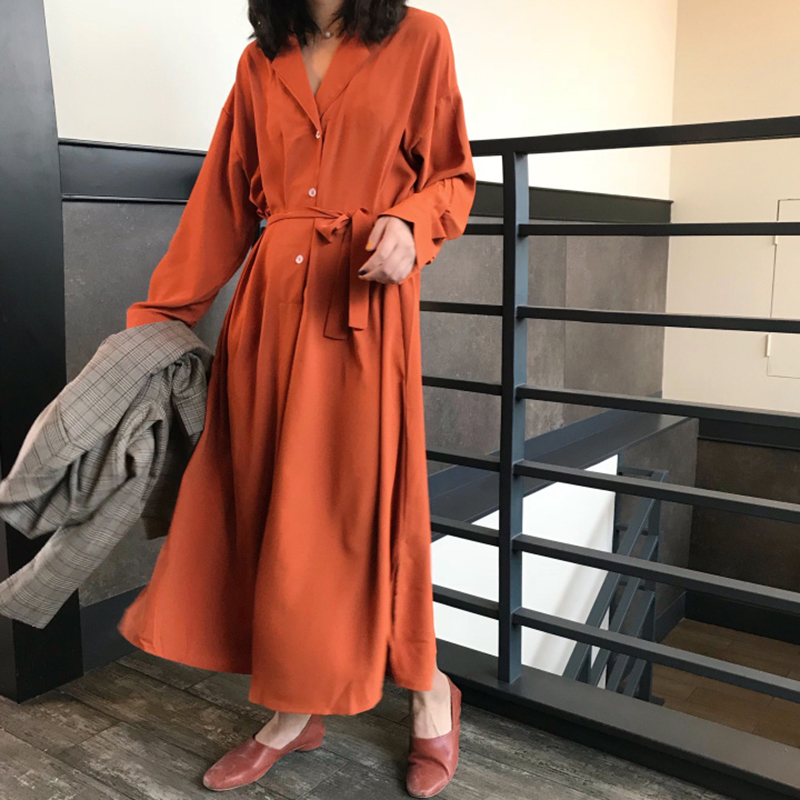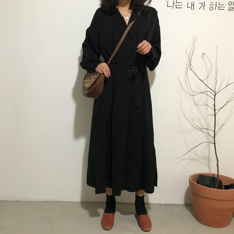 / 法式少女桔梗裙秋冬女裝2018新款漢堡西安氣質系帶收腰雪紡連衣裙