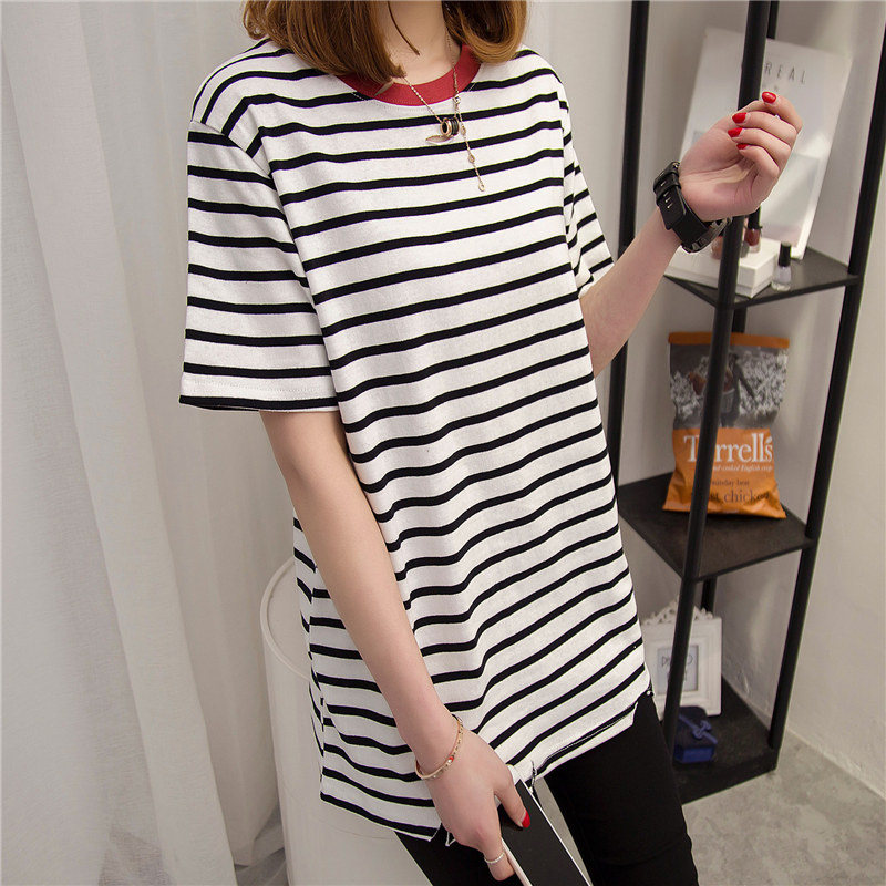 / 打底衫女上衣條紋短袖t恤女寬松體恤韓版學生春季時尚新款潮