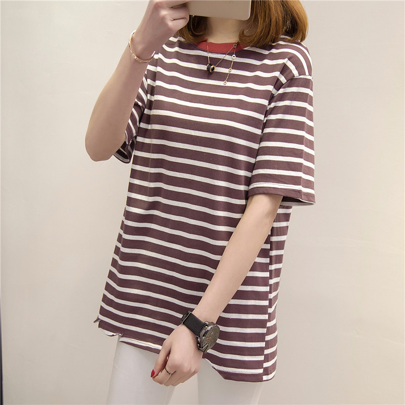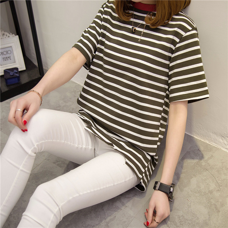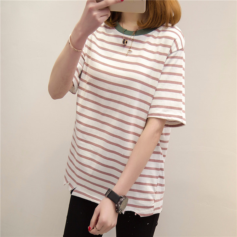 打底衫女上衣條紋短袖t恤女寬松體恤韓版學生春季時尚新款潮