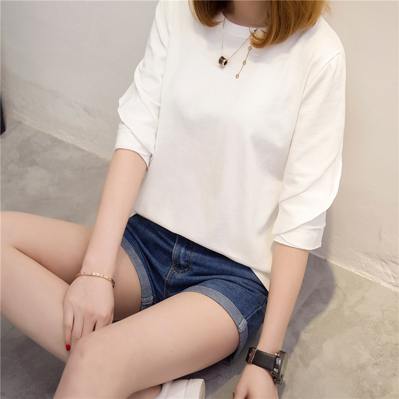 / 短袖上衣女夏新款春裝白色t恤女寬松韓版半袖百搭打底體恤衫