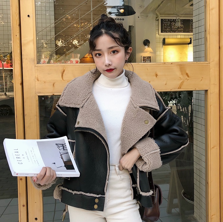 港風外套女冬裝2018新款百搭寬松百搭羊羔毛內膽皮棉服棉衣女上衣