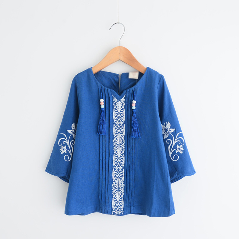 寶寶刺繡娃娃衫 秋裝韓新款女童童裝兒童七分袖裙衣tx-7052