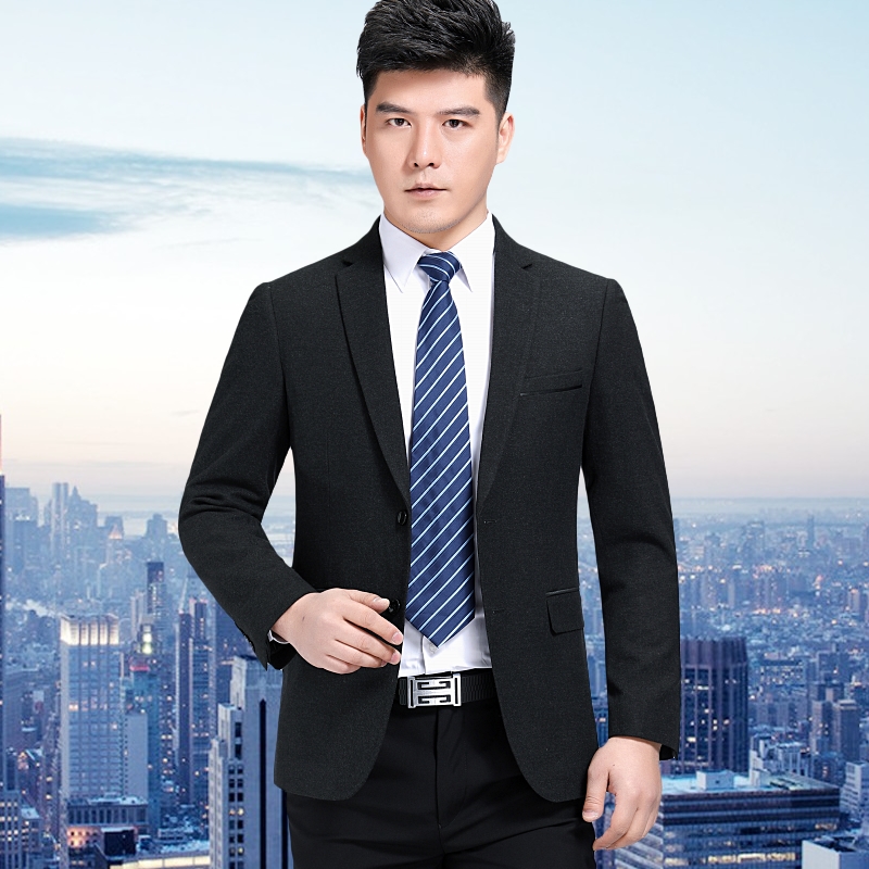 / 2018春裝新款品牌中年男士羊毛西服休閑男裝上衣免燙單件西裝外套