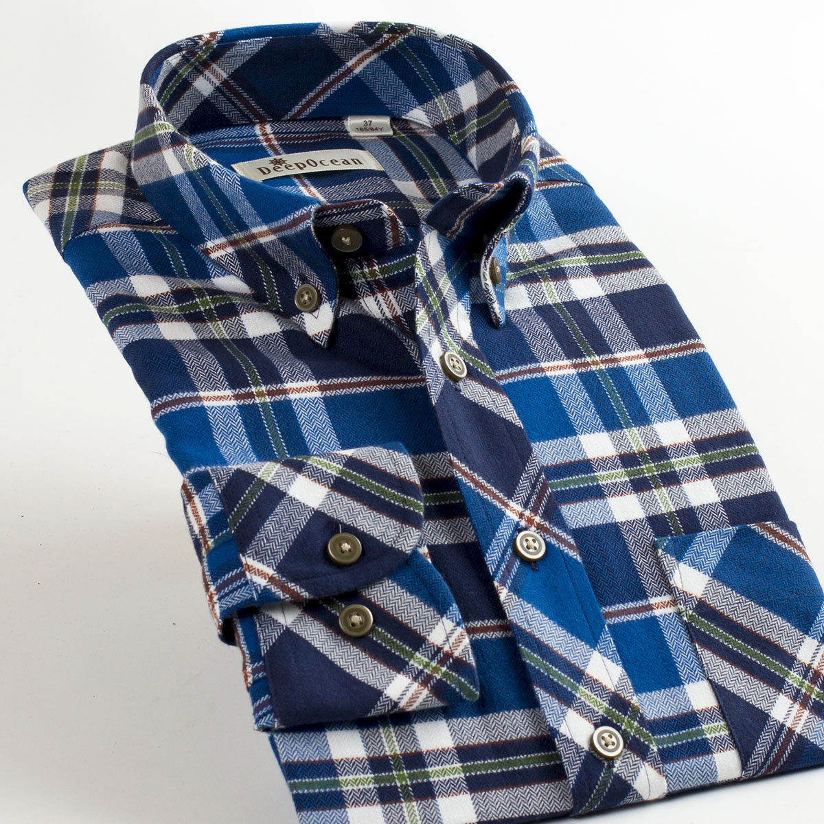 DEEPOCEAN2015秋新款男士長袖格子襯衫保暖加厚彩格絨修身襯衣