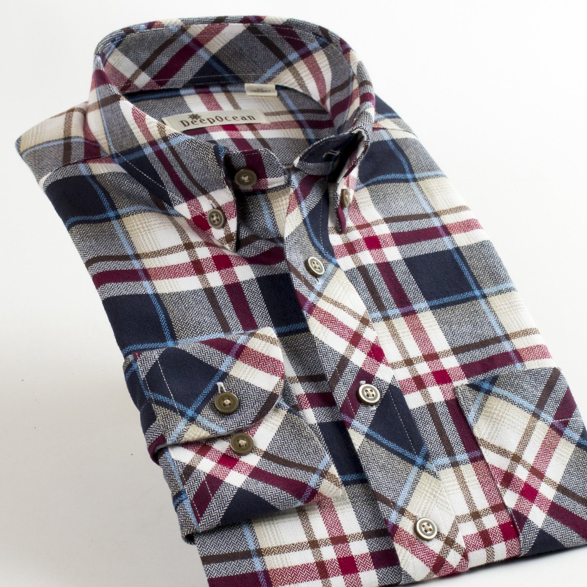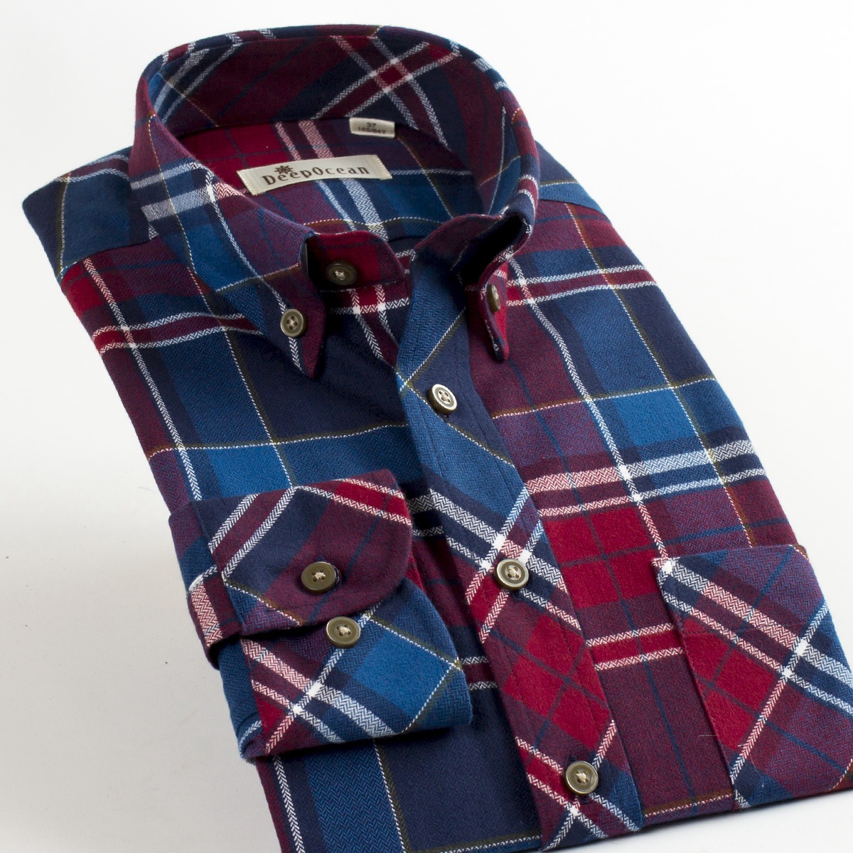 / DEEPOCEAN2015秋新款男士長袖格子襯衫保暖加厚彩格絨修身襯衣