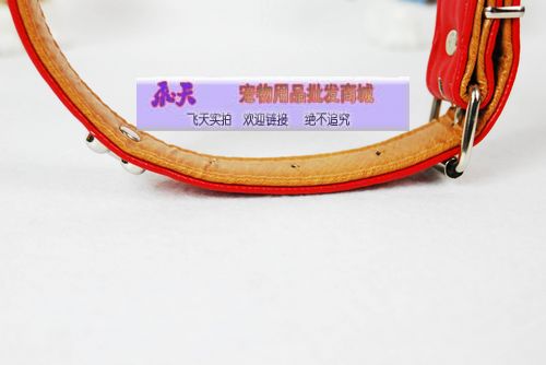 大狗專用◆精裝金屬骨頭雙層PU皮項圈2.5cm 80g狗項圈LM092