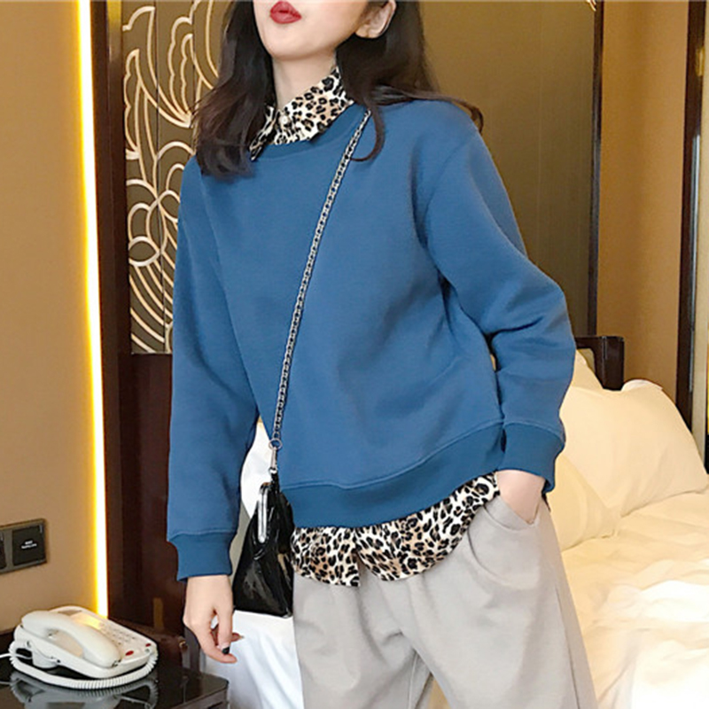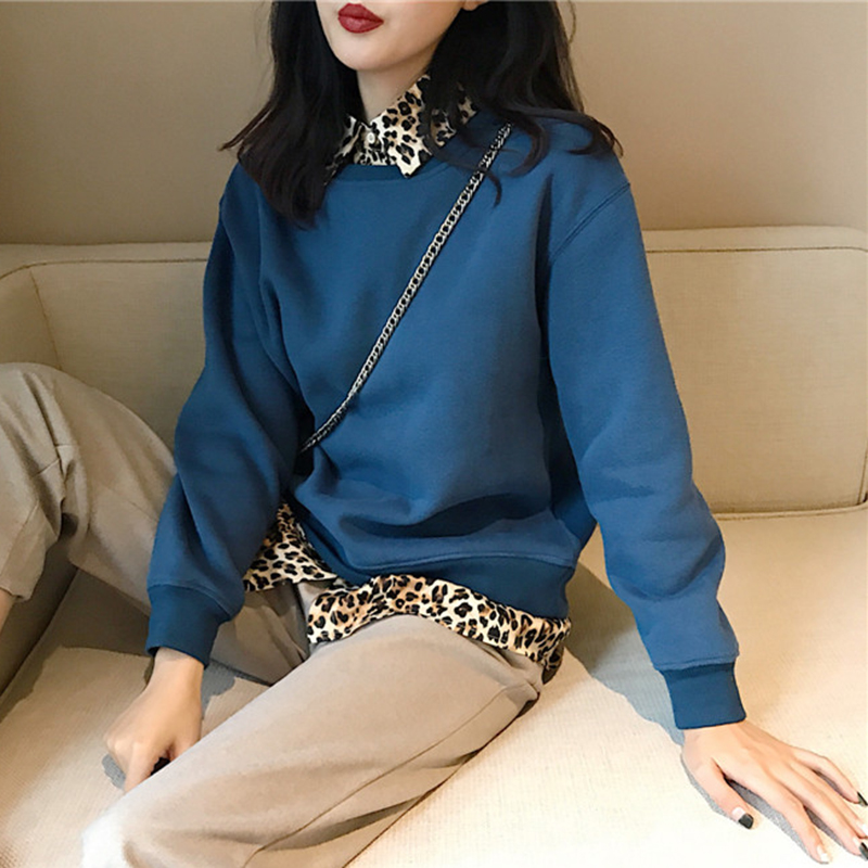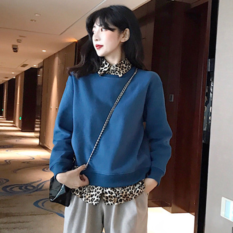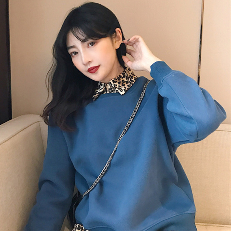 / 寬松豹紋POLO領衛衣2018新款女秋冬裝港風外套中長款學生加絨上衣