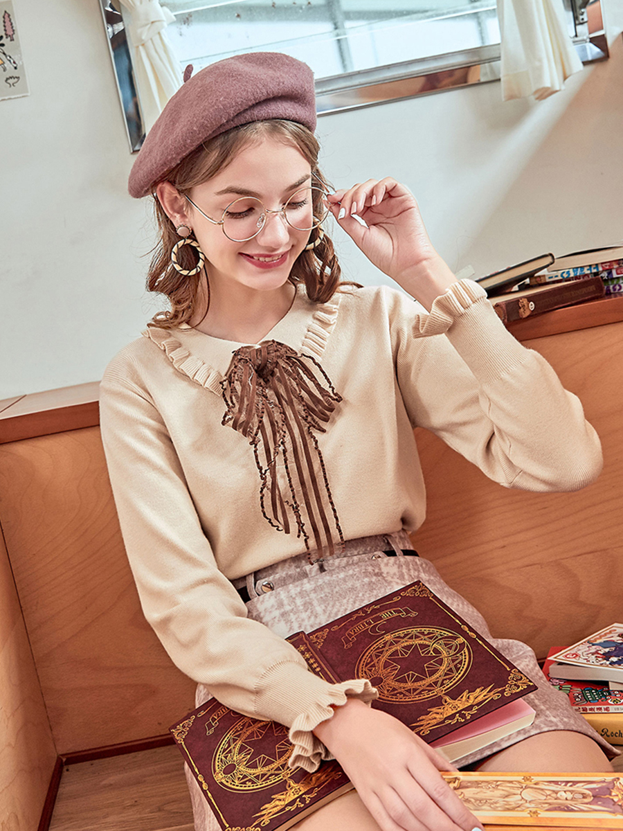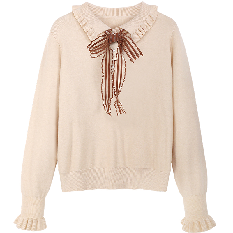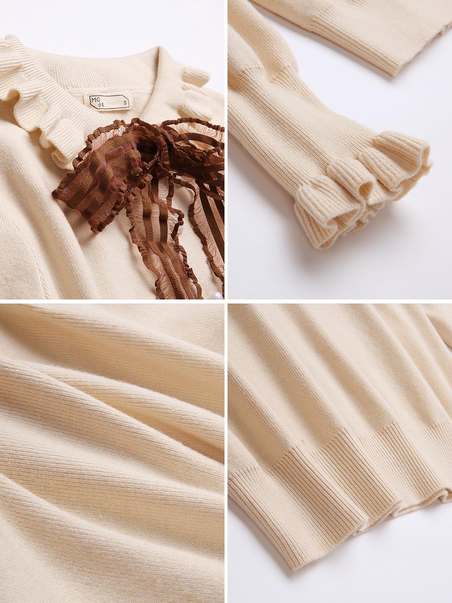 MG小象毛針織衫女秋冬2018新款寬松長袖打底衫復古甜美荷葉邊上衣