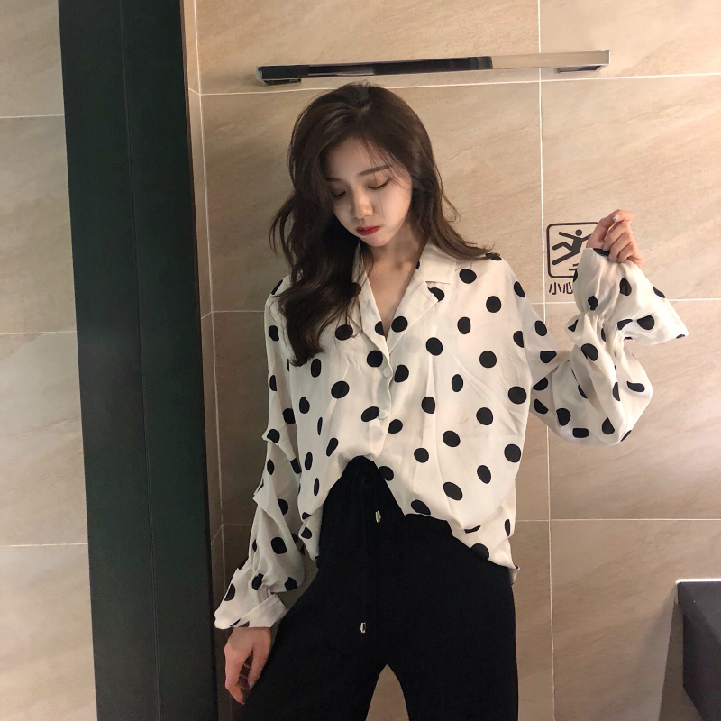 / 秋季新款雪紡長袖百搭襯衫顯瘦打底衫高腰休閑針織長褲時尚套裝女