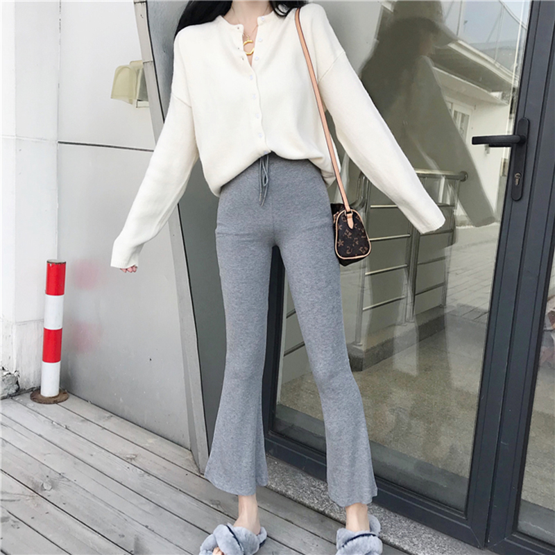 / 女神套裝秋冬女2018新款時尚單排扣長袖毛衣氣質高腰休閑喇叭長褲