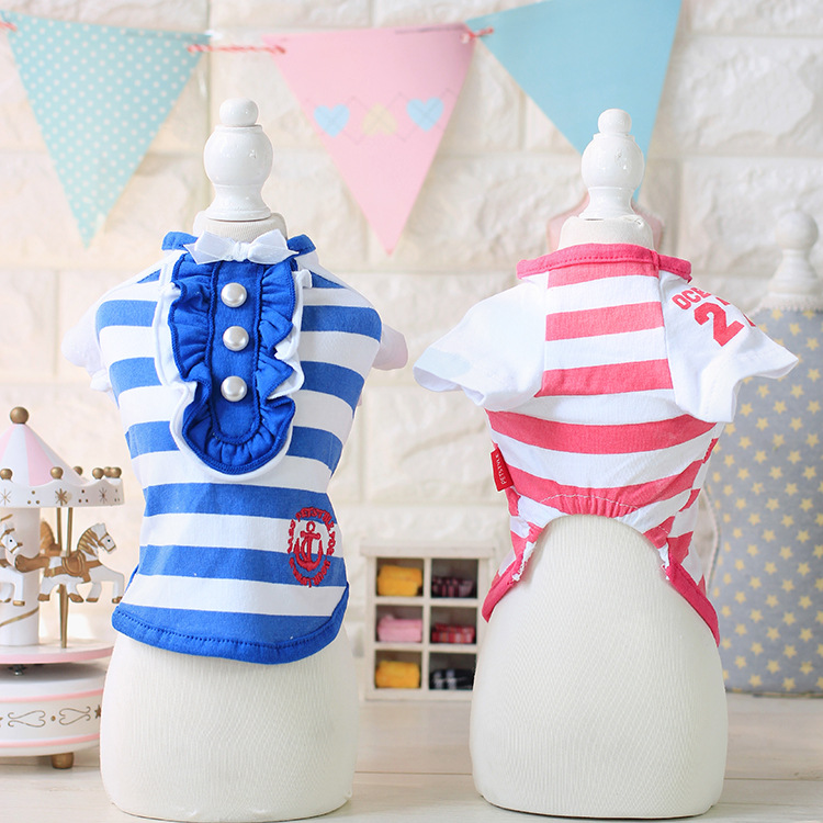 / 小氣質の海軍條紋衫 寵物水手服狗狗T恤泰迪春夏裝比熊約克夏