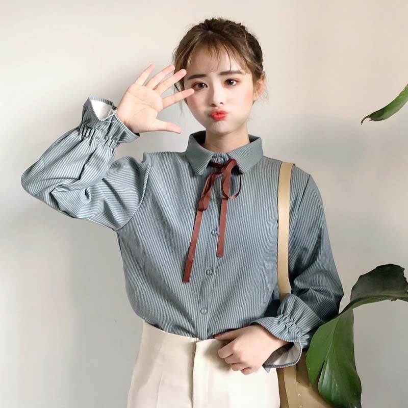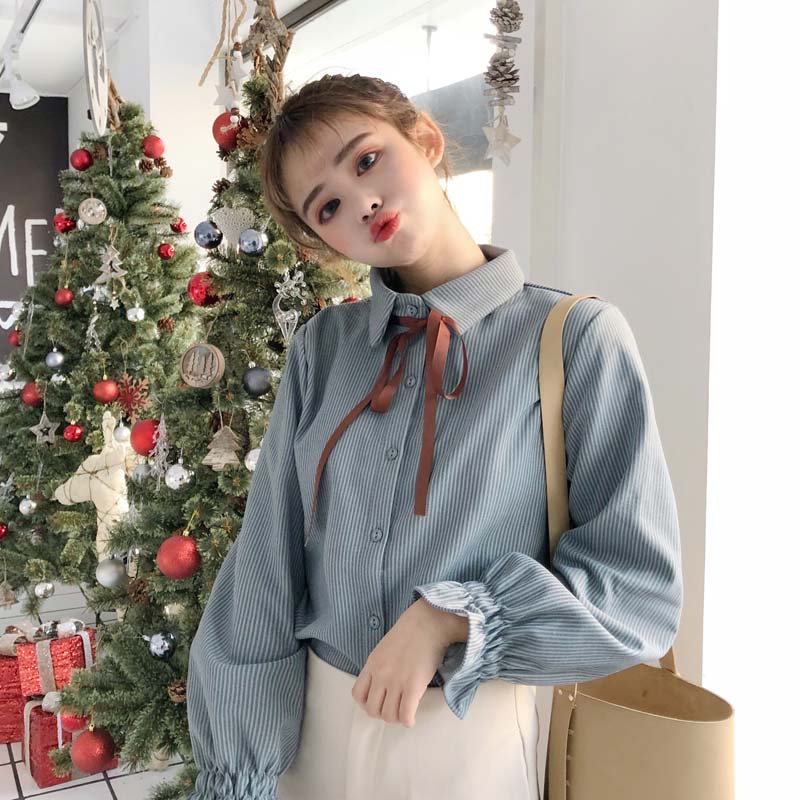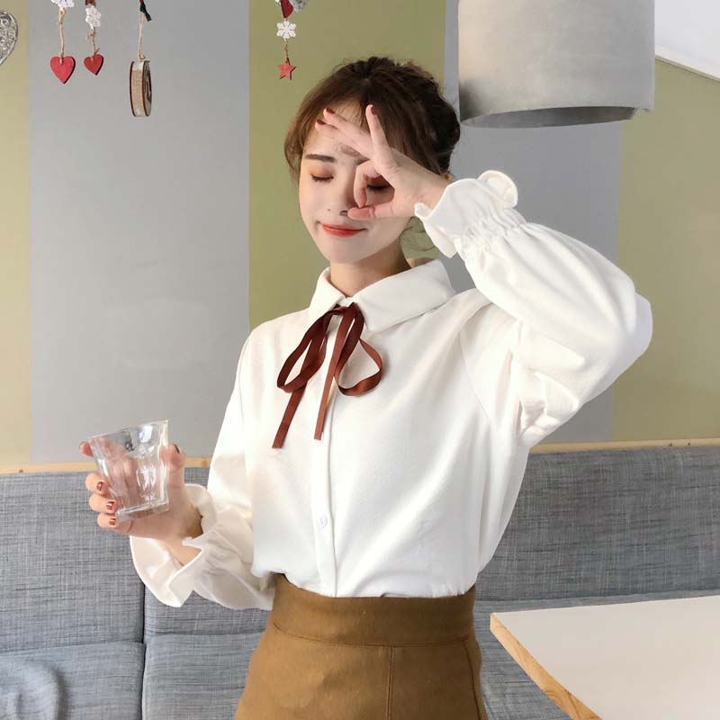 / 秋季女裝2018新款韓版氣質chic系帶襯衫復古長袖休閑襯衣上衣學生