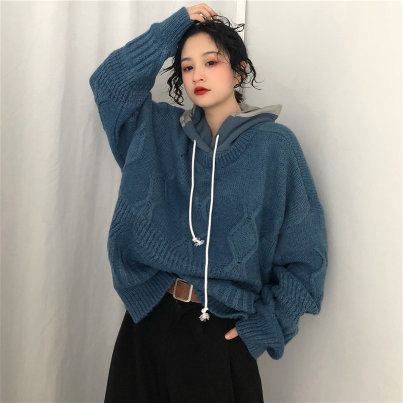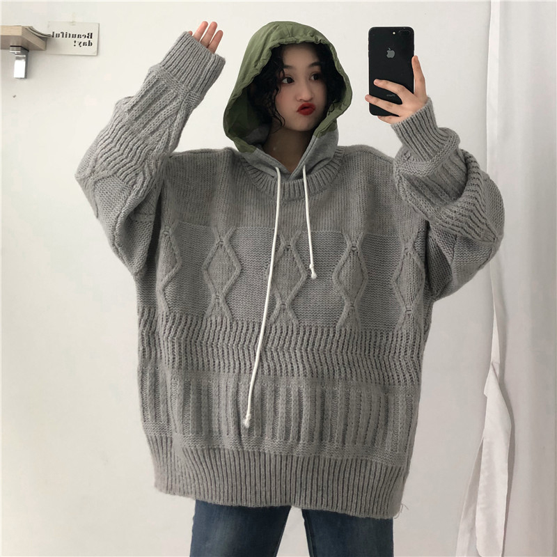 慵懶風抽繩連帽針織衫女秋冬裝2018新款韓版寬松麻花套頭毛衣外套