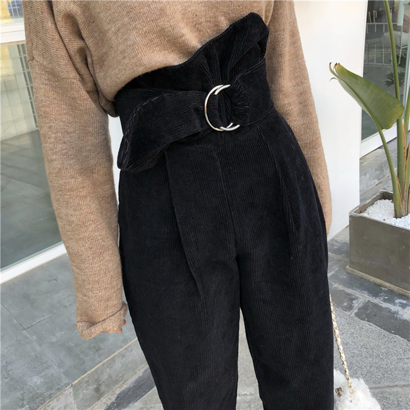 / 老爹褲女秋冬2018新款韓版高腰燈芯絨長褲學生小腳哈倫褲初戀褲子