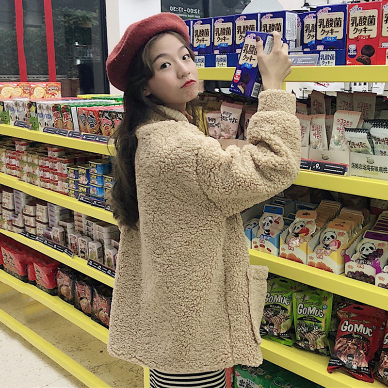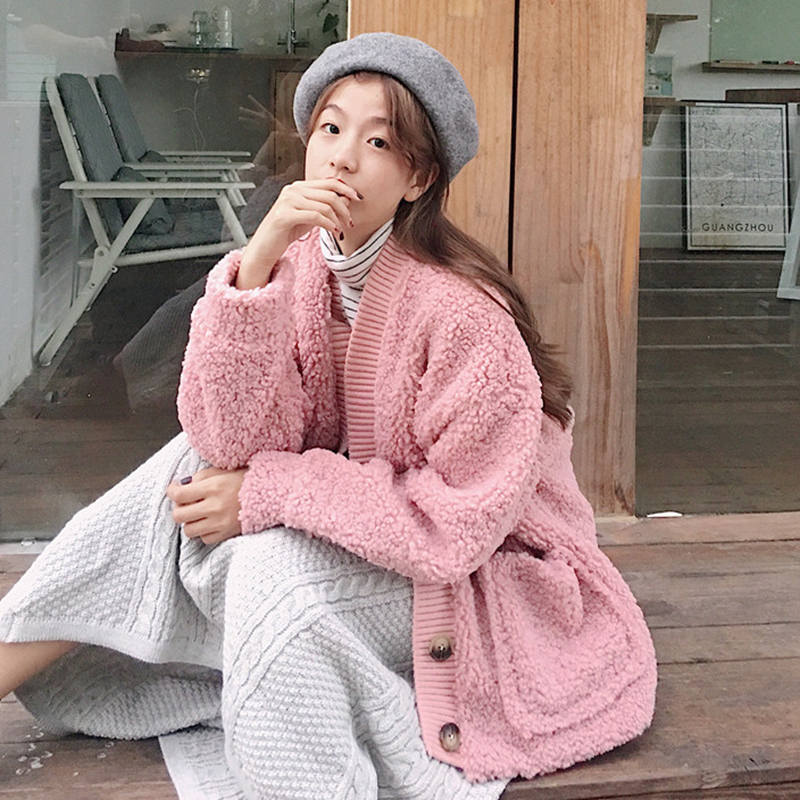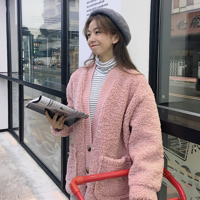 復古風羊羔毛外套秋冬女裝2018新款韓版寬松長袖開衫學生休閑上衣