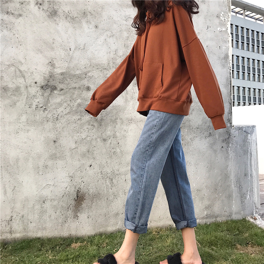 秋裝女2018新款復古港味九分褲學生韓版寬松高腰原宿直筒牛仔褲女