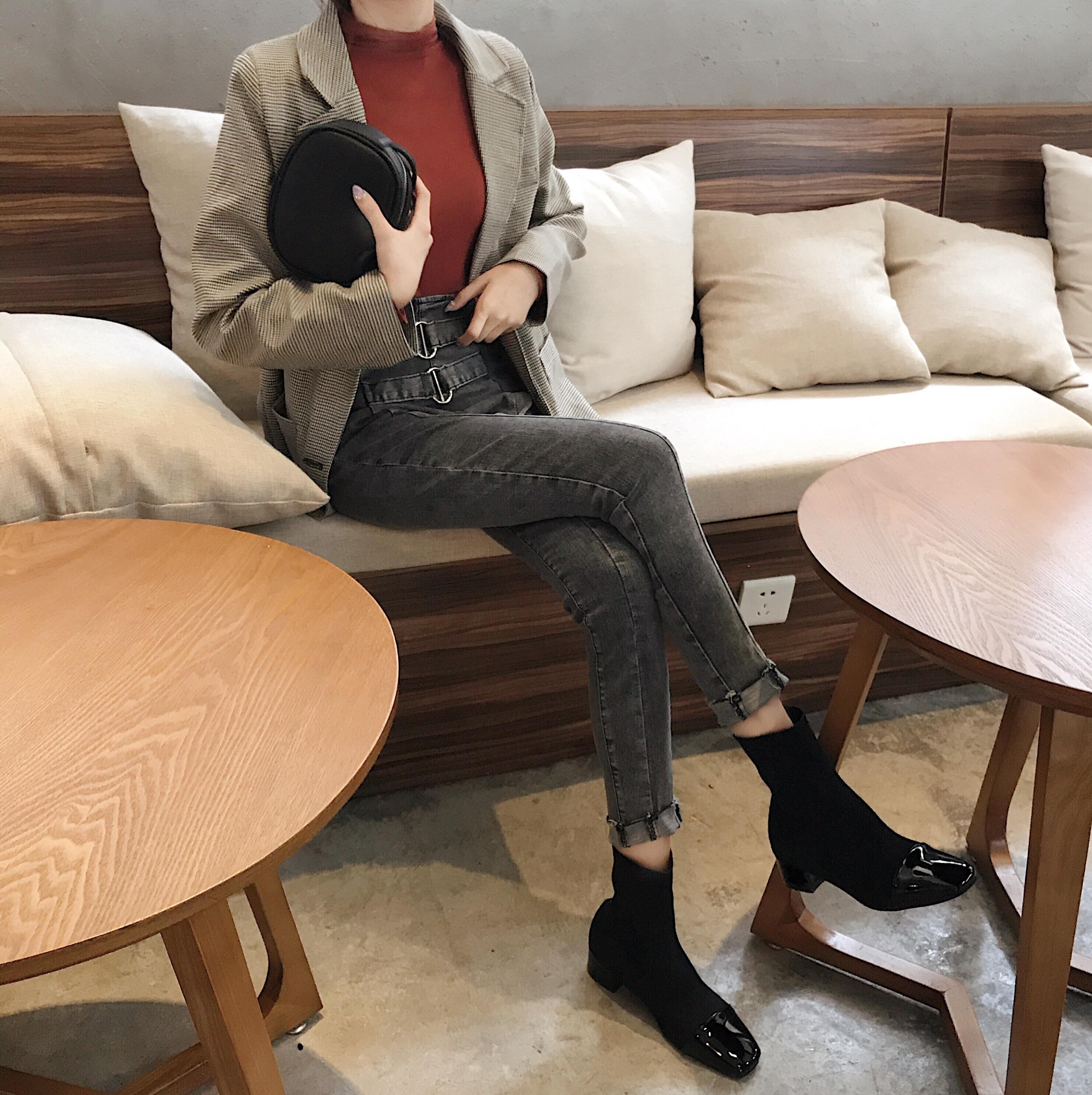/ 褲子秋季新款韓國復古修身百搭鉛筆褲高腰顯瘦彈力小腳牛仔褲女潮