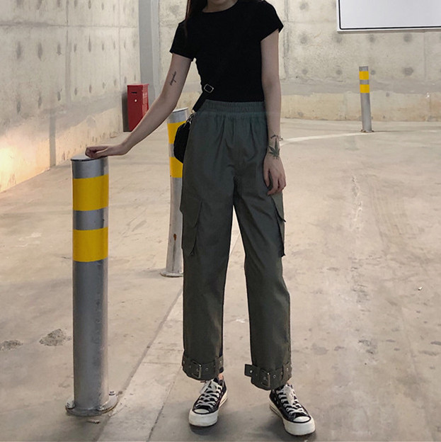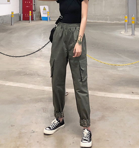 / 秋季女裝韓版寬松BF風工裝束腳褲高腰顯瘦直筒褲哈倫褲休閑褲長褲