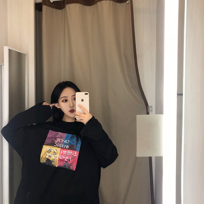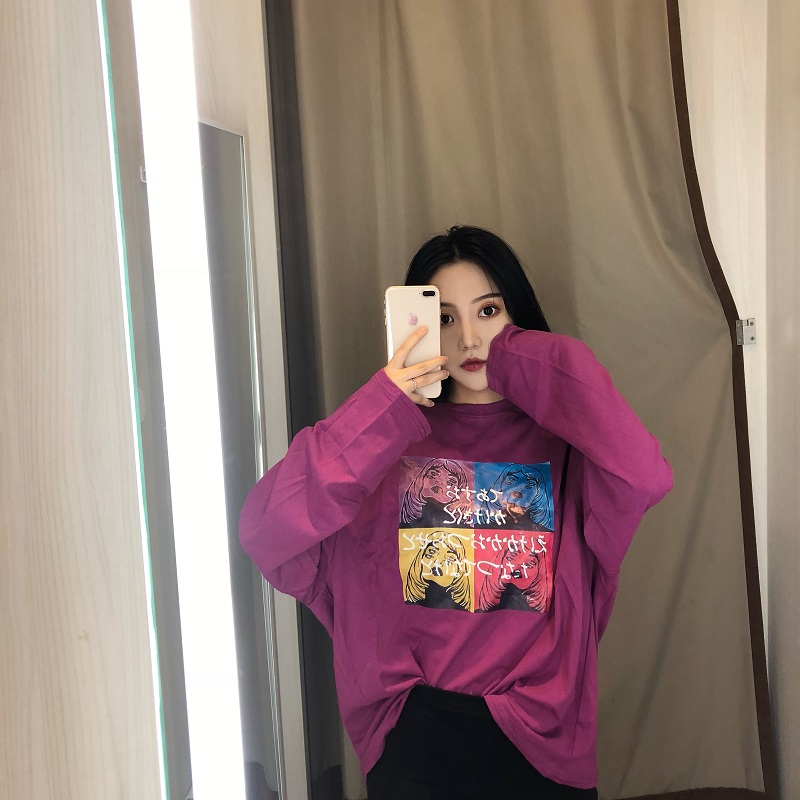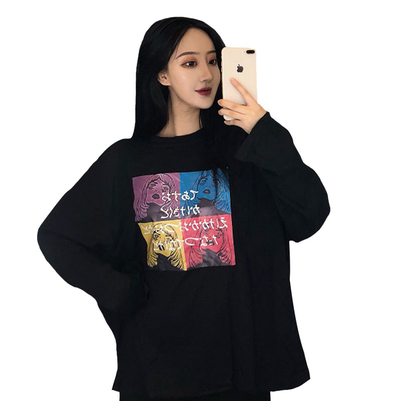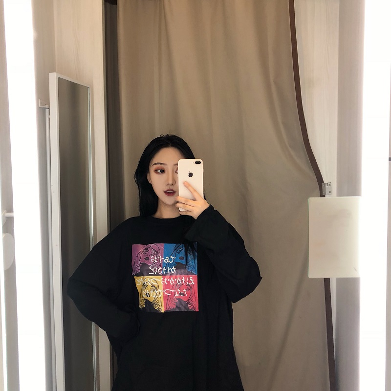 / 秋季女裝韓版原宿風長袖打底衫T恤寬松中長款學生顯瘦體恤上衣潮