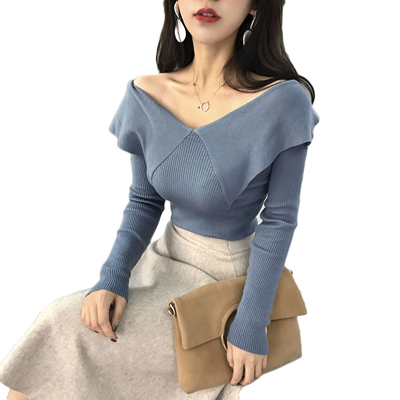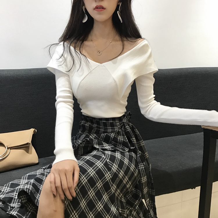 2018秋裝新款女交叉領性感V領毛衣韓版修身顯瘦氣質百搭上衣女潮